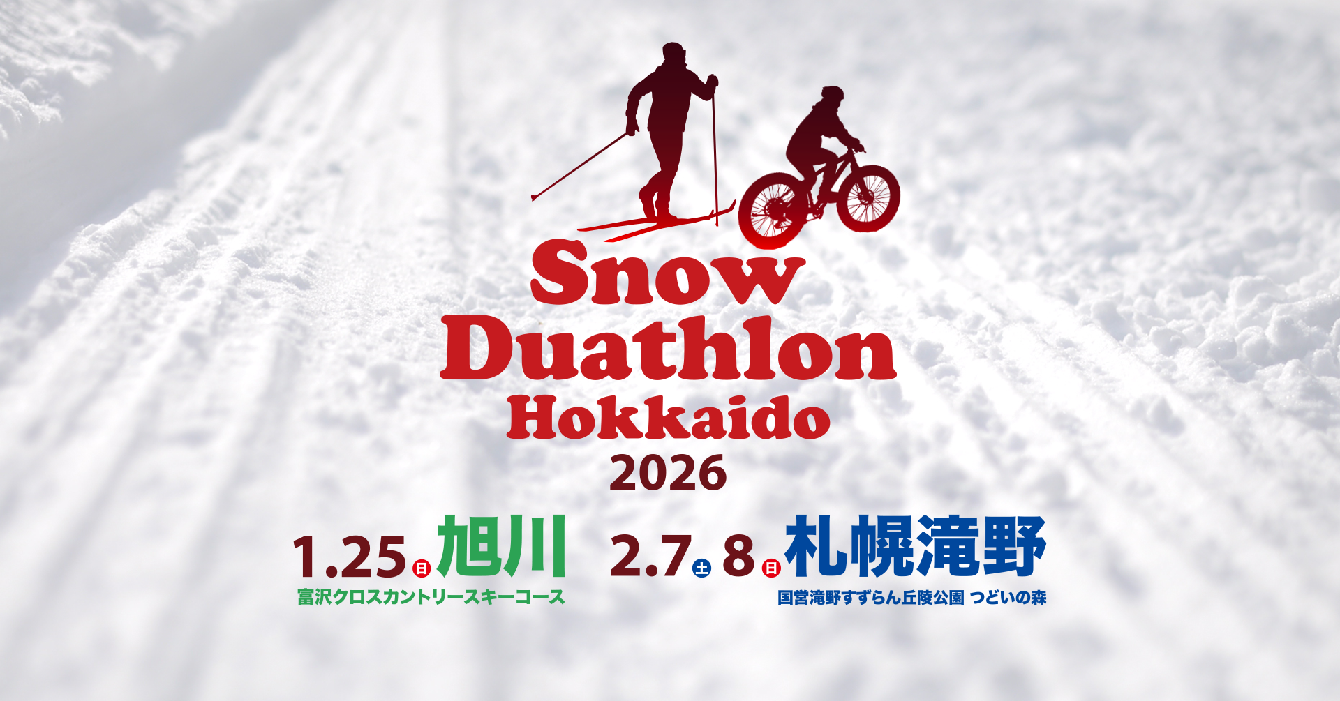 Events スノーデュアスロン北海道2026 雪上自転車とクロスカントリースキーの雪上デュアスロン大会! 1/25(日) 旭川大会 2/7.8(土.日)札幌滝野公園大会 エントリー受付中 1/4(日)開催・大人になって